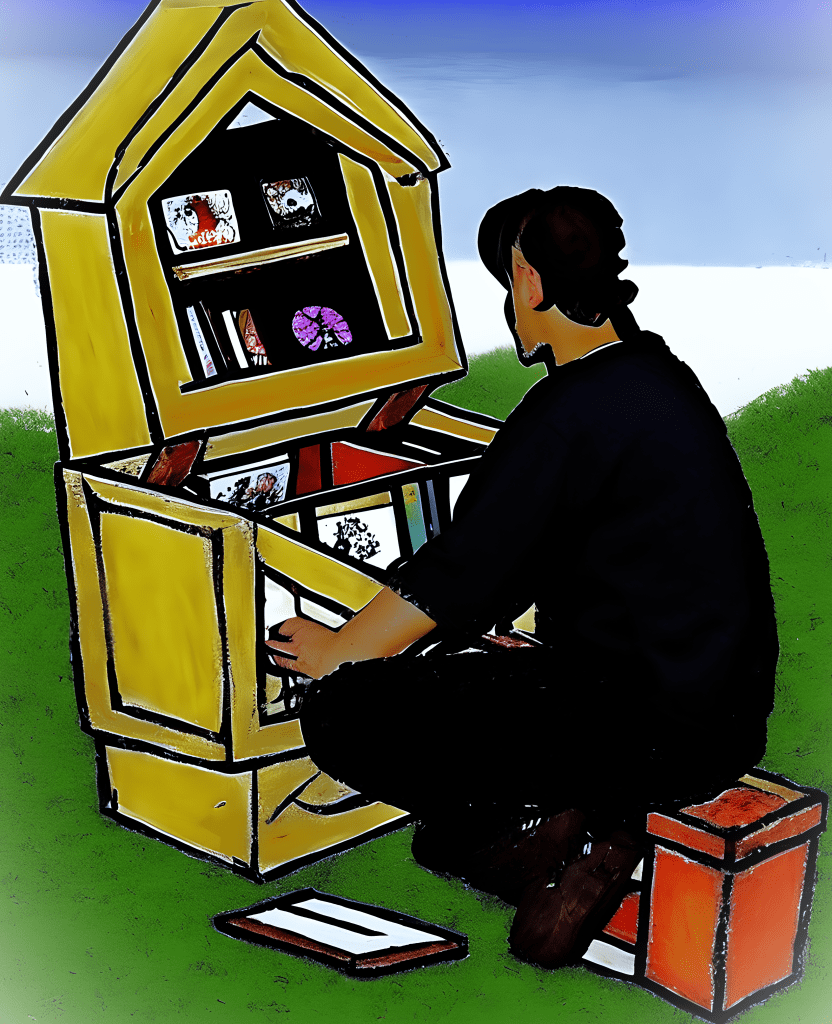 He spent weeks working on the book box, sanding and painting it until it shone. David worked tirelessly until it was perfect. He even carved a little plaque in honor of his wife. He placed it outside his house and filled it with books, everything from classic novels to children’s picture books.
