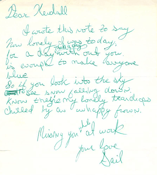 Testing out nicknames. It didn’t stick. This was a love note I wrote while working.