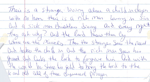 Then the stranger sees the need, and takes the child in,