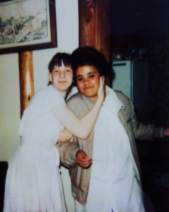 Fifth-grade graduation, after at the church, Kate and I,