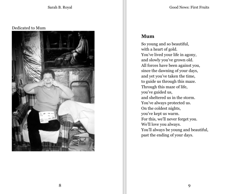 Sarah B. Royal continues to expand the possibilities of poetic form, offering readers a deeply personal yet universally resonant experience. Her writing is a testament to the power of creative risk, intellectual depth, and emotional authenticity.