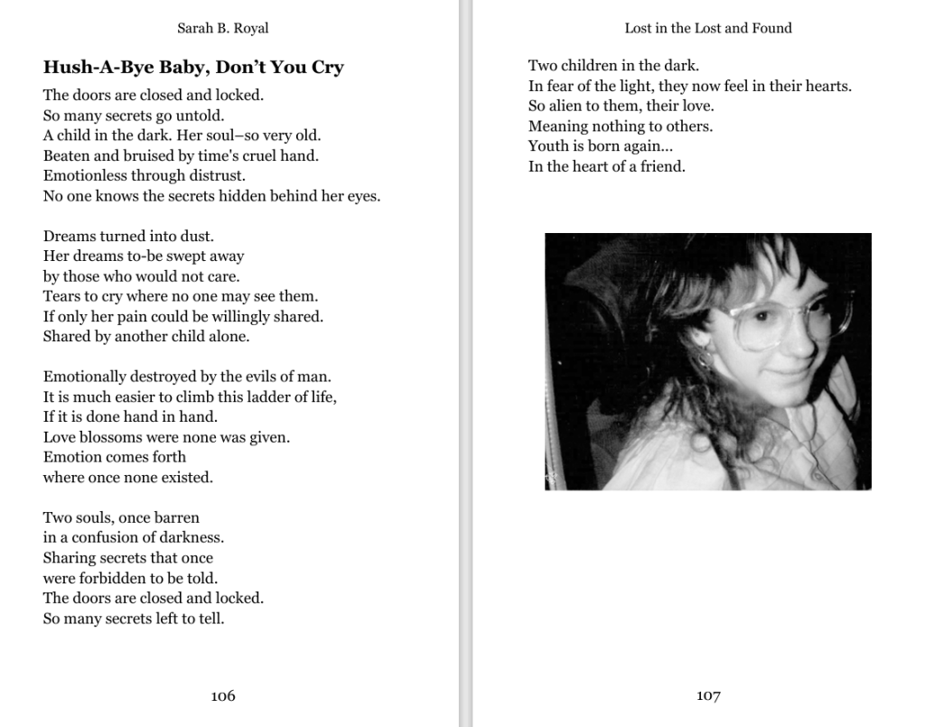Sarah B. Royal continues to expand the possibilities of poetic form, offering readers a deeply personal yet universally resonant experience. Her writing is a testament to the power of creative risk, intellectual depth, and emotional authenticity.