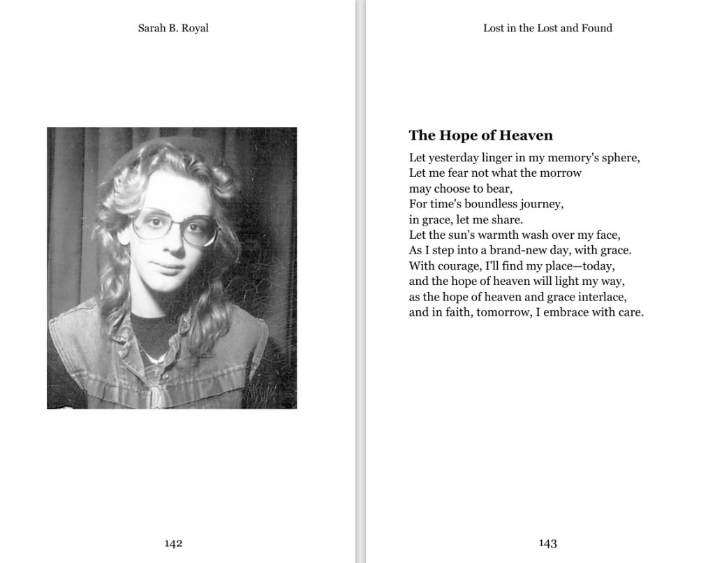 Sarah B. Royal continues to expand the possibilities of poetic form, offering readers a deeply personal yet universally resonant experience. Her writing is a testament to the power of creative risk, intellectual depth, and emotional authenticity.