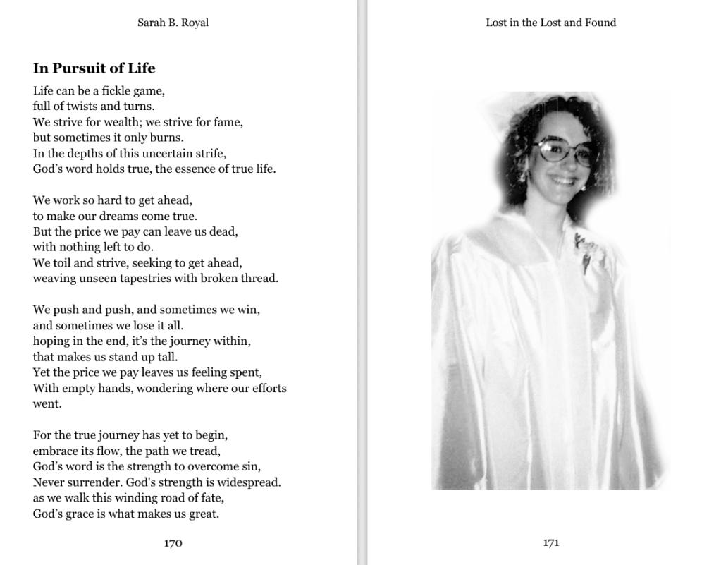 Sarah B. Royal continues to expand the possibilities of poetic form, offering readers a deeply personal yet universally resonant experience. Her writing is a testament to the power of creative risk, intellectual depth, and emotional authenticity.