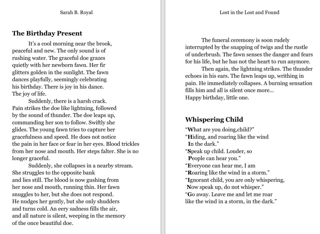 Sarah B. Royal continues to expand the possibilities of poetic form, offering readers a deeply personal yet universally resonant experience. Her writing is a testament to the power of creative risk, intellectual depth, and emotional authenticity.