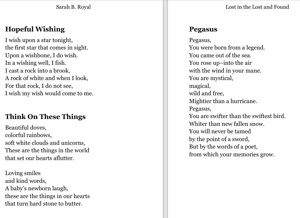 Sarah B. Royal continues to expand the possibilities of poetic form, offering readers a deeply personal yet universally resonant experience. Her writing is a testament to the power of creative risk, intellectual depth, and emotional authenticity.