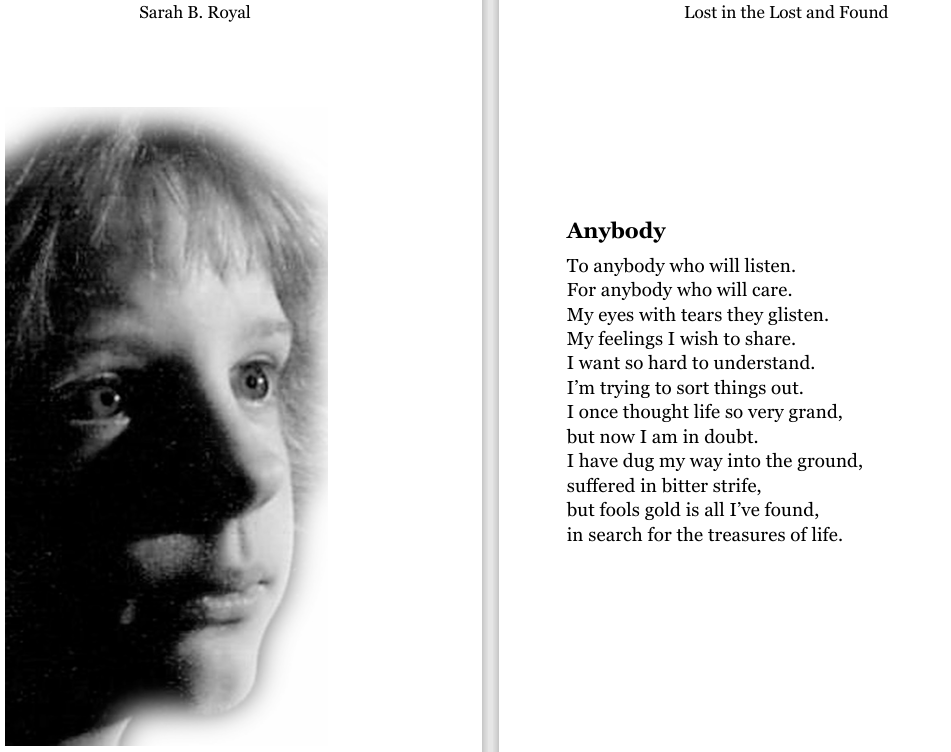 Sarah B. Royal continues to expand the possibilities of poetic form, offering readers a deeply personal yet universally resonant experience. Her writing is a testament to the power of creative risk, intellectual depth, and emotional authenticity.