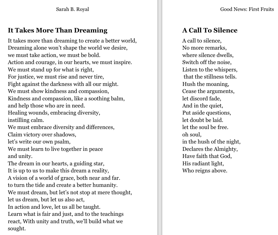 Sarah B. Royal continues to expand the possibilities of poetic form, offering readers a deeply personal yet universally resonant experience. Her writing is a testament to the power of creative risk, intellectual depth, and emotional authenticity.