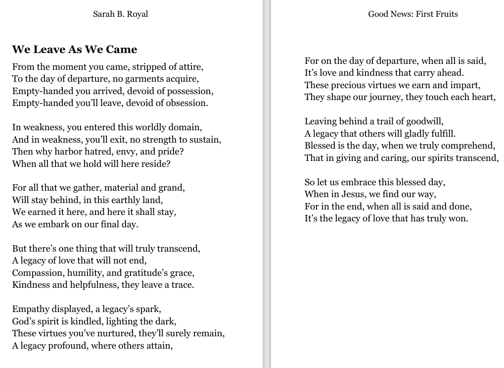 Sarah B. Royal continues to expand the possibilities of poetic form, offering readers a deeply personal yet universally resonant experience. Her writing is a testament to the power of creative risk, intellectual depth, and emotional authenticity.
