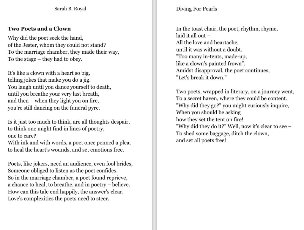 Sarah B. Royal continues to expand the possibilities of poetic form, offering readers a deeply personal yet universally resonant experience. Her writing is a testament to the power of creative risk, intellectual depth, and emotional authenticity.