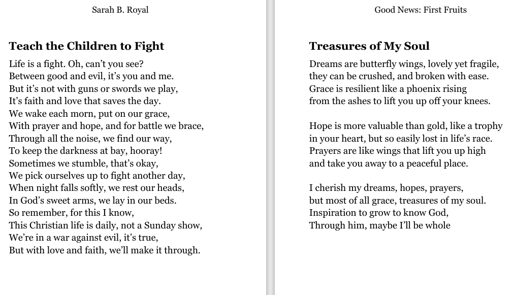 Sarah B. Royal continues to expand the possibilities of poetic form, offering readers a deeply personal yet universally resonant experience. Her writing is a testament to the power of creative risk, intellectual depth, and emotional authenticity.