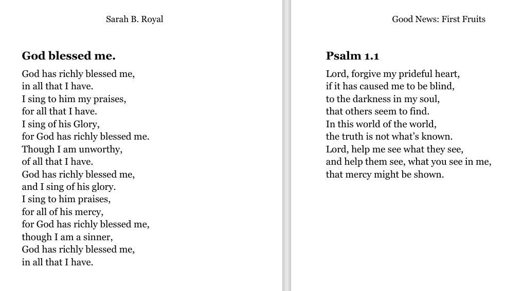 Sarah B. Royal continues to expand the possibilities of poetic form, offering readers a deeply personal yet universally resonant experience. Her writing is a testament to the power of creative risk, intellectual depth, and emotional authenticity.