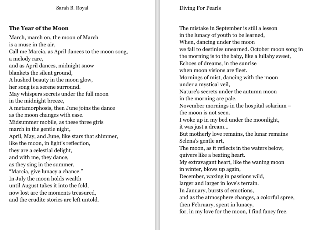 Sarah B. Royal continues to expand the possibilities of poetic form, offering readers a deeply personal yet universally resonant experience. Her writing is a testament to the power of creative risk, intellectual depth, and emotional authenticity.