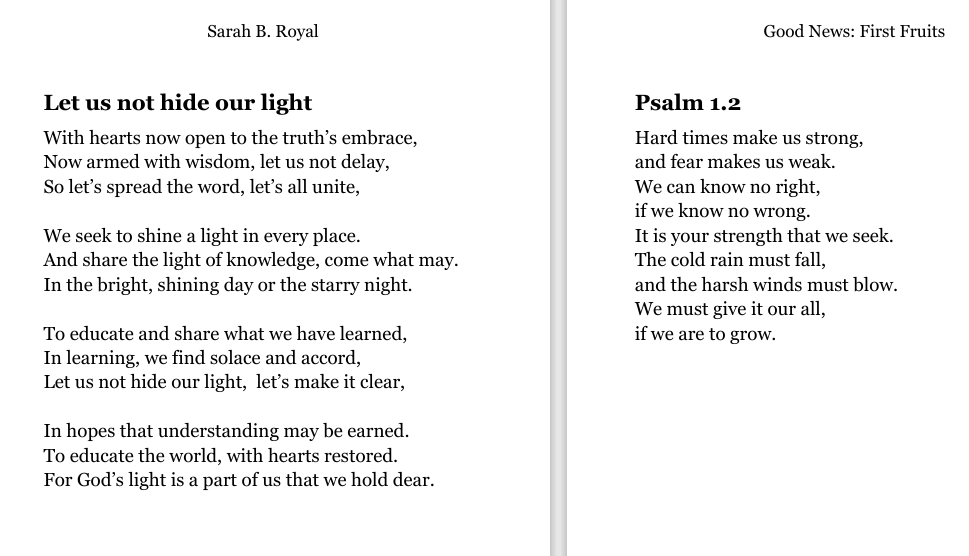 Sarah B. Royal continues to expand the possibilities of poetic form, offering readers a deeply personal yet universally resonant experience. Her writing is a testament to the power of creative risk, intellectual depth, and emotional authenticity.