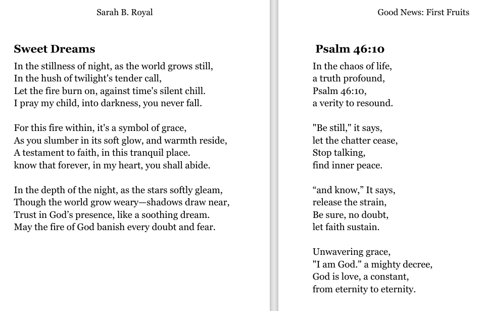 Sarah B. Royal continues to expand the possibilities of poetic form, offering readers a deeply personal yet universally resonant experience. Her writing is a testament to the power of creative risk, intellectual depth, and emotional authenticity.