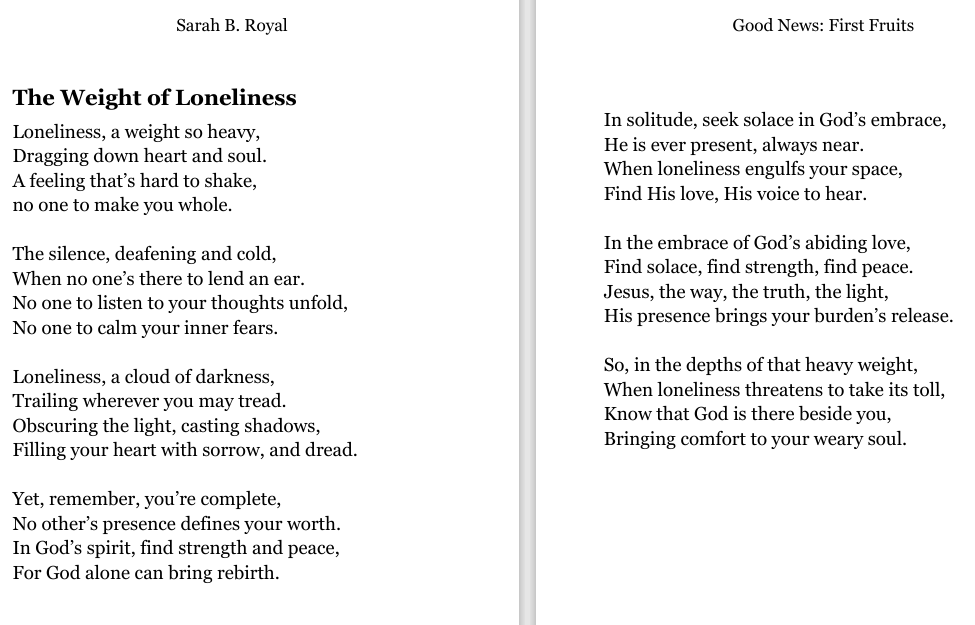 Sarah B. Royal continues to expand the possibilities of poetic form, offering readers a deeply personal yet universally resonant experience. Her writing is a testament to the power of creative risk, intellectual depth, and emotional authenticity.