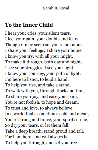 Sarah B. Royal continues to expand the possibilities of poetic form, offering readers a deeply personal yet universally resonant experience. Her writing is a testament to the power of creative risk, intellectual depth, and emotional authenticity.