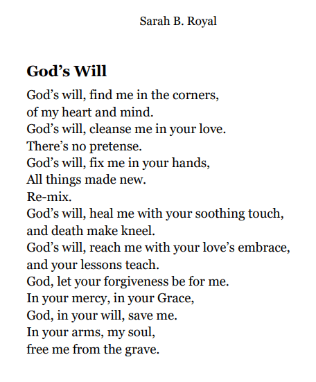 Sarah B. Royal continues to expand the possibilities of poetic form, offering readers a deeply personal yet universally resonant experience. Her writing is a testament to the power of creative risk, intellectual depth, and emotional authenticity.