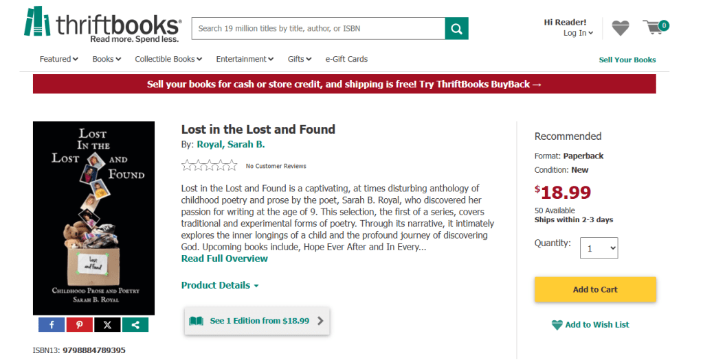 Sarah B. Royal continues to expand the possibilities of poetic form, offering readers a deeply personal yet universally resonant experience. Her writing is a testament to the power of creative risk, intellectual depth, and emotional authenticity.