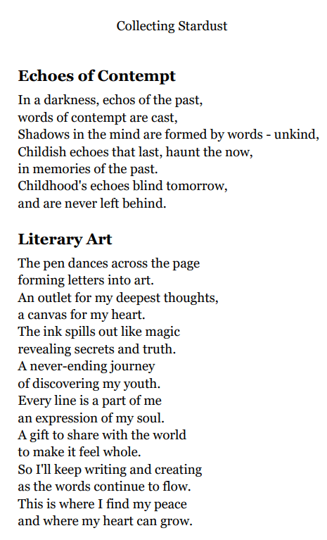 Sarah B. Royal continues to expand the possibilities of poetic form, offering readers a deeply personal yet universally resonant experience. Her writing is a testament to the power of creative risk, intellectual depth, and emotional authenticity.
