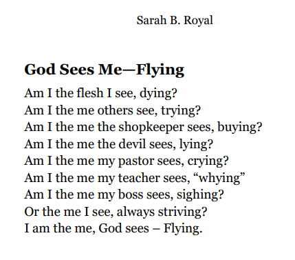 Sarah B. Royal continues to expand the possibilities of poetic form, offering readers a deeply personal yet universally resonant experience. Her writing is a testament to the power of creative risk, intellectual depth, and emotional authenticity.
