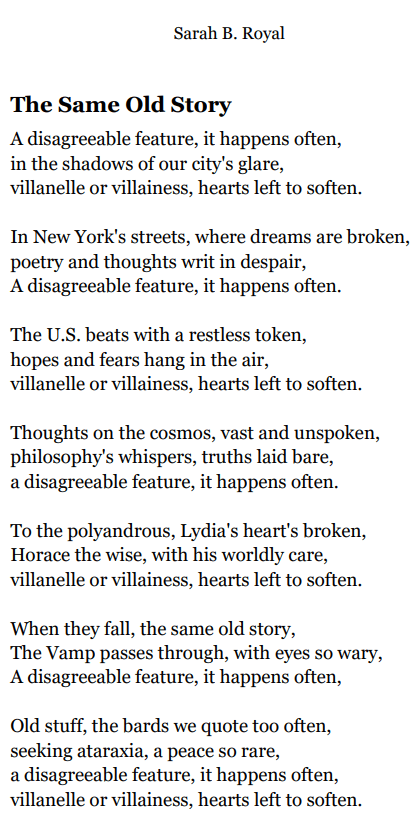 Sarah B. Royal continues to expand the possibilities of poetic form, offering readers a deeply personal yet universally resonant experience. Her writing is a testament to the power of creative risk, intellectual depth, and emotional authenticity.