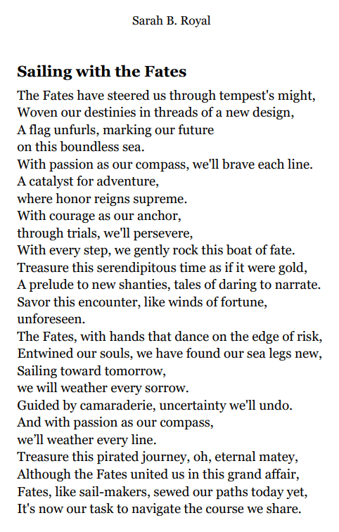 Sarah B. Royal continues to expand the possibilities of poetic form, offering readers a deeply personal yet universally resonant experience. Her writing is a testament to the power of creative risk, intellectual depth, and emotional authenticity.
