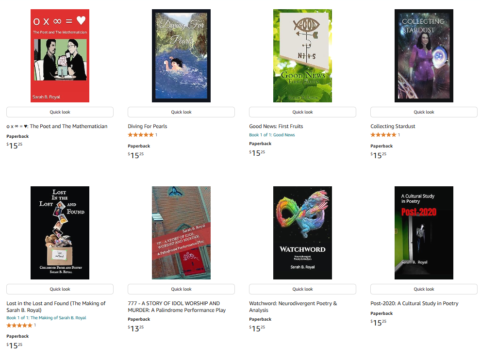 Sarah B. Royal continues to expand the possibilities of poetic form, offering readers a deeply personal yet universally resonant experience. Her writing is a testament to the power of creative risk, intellectual depth, and emotional authenticity.