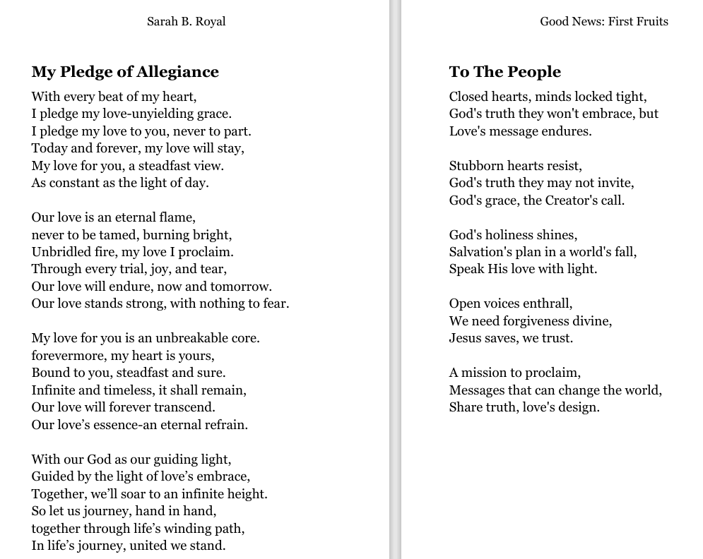 Sarah B. Royal continues to expand the possibilities of poetic form, offering readers a deeply personal yet universally resonant experience. Her writing is a testament to the power of creative risk, intellectual depth, and emotional authenticity.