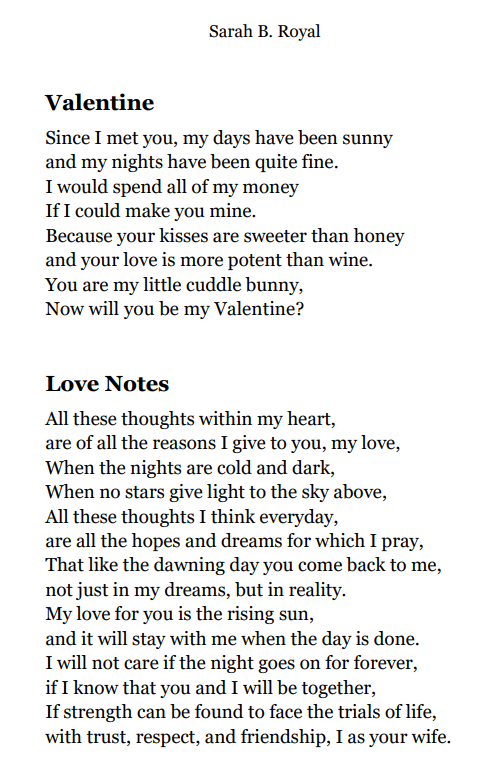 Sarah B. Royal continues to expand the possibilities of poetic form, offering readers a deeply personal yet universally resonant experience. Her writing is a testament to the power of creative risk, intellectual depth, and emotional authenticity.