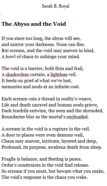 Sarah B. Royal continues to expand the possibilities of poetic form, offering readers a deeply personal yet universally resonant experience. Her writing is a testament to the power of creative risk, intellectual depth, and emotional authenticity.