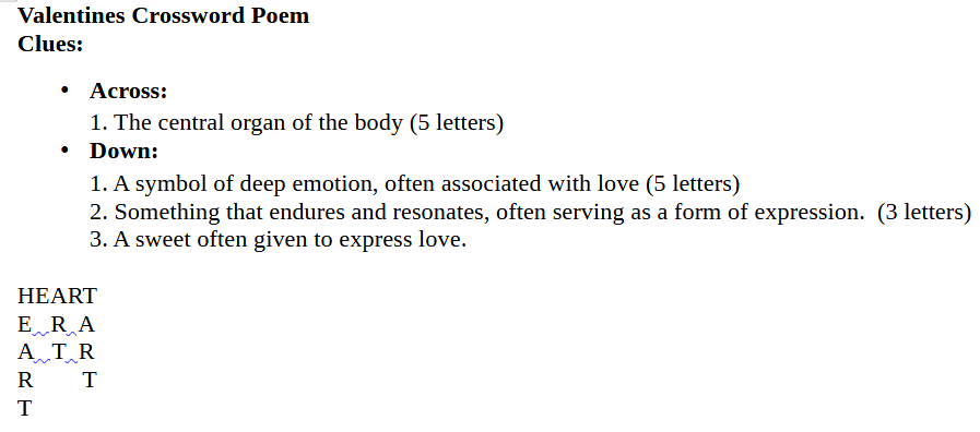 Valentines Crossword Poem