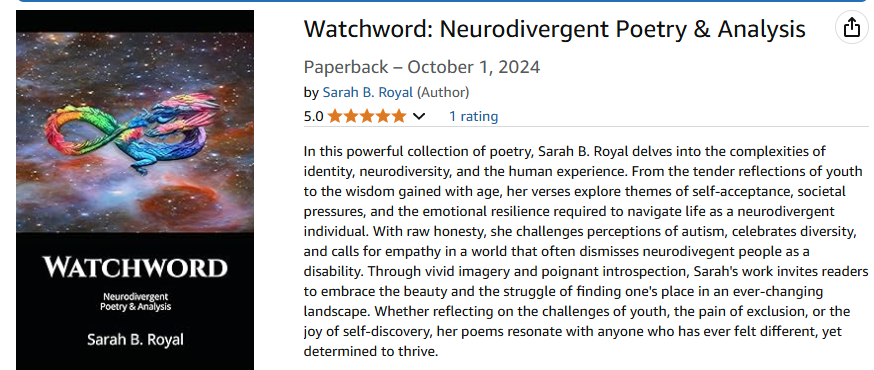 Royal’s collections—such as Lost in the Lost and Found, Haiku For You, Lantern and Tanka Too, and the WoPoLi Chapbook Series—highlight her commitment to neurodivergent expression and poetic experimentation. Whether through childhood verse or contemporary fusion poetry, her work invites readers into a world where language is both a tool and a playground.