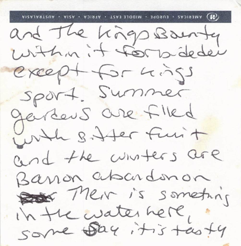 The land is a forsaken wilderness since the time of Thoreau, though they call this land “Park”. And the king’s bounty within is forbidden except for the king’s sport. Summer gardens are filled with bitter fruit, and the winters are barren abandon.