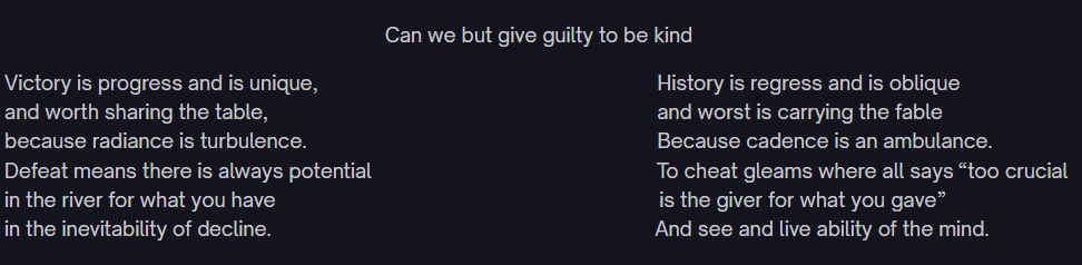 because radiance is turbulence. Because cadence is an ambulance.