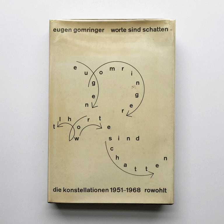Eugen Gomringer (1925–2025) was a Bolivian-born Swiss poet and art theorist. He is often called the founder of concrete poetry. In 1953, he published a book that used the term konkrete Poesie (concrete poetry). He created short poems that he called “constellations.” In these works, ordinary words were arranged carefully on the page. The spacing, repetition, and placement of the words created meaning. In 1960, he wrote a manifesto titled vom vers zur konstellation (“from verse to constellation”), where he argued that a poem should be a “visual and functional object.” This meant that a poem should work like a designed object, not just like a paragraph of text. His minimalist poems, such as Schweigen (“Silence”) and Ping pong, became widely studied in schools.