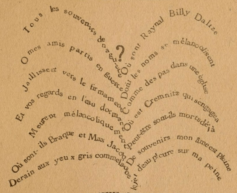 Concrete poetry also had earlier influences. One important predecessor was Guillaume Apollinaire, a French poet who lived from 1880 to 1918.