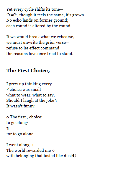 Sarah B. Royal continues to expand the possibilities of poetic form, offering readers a deeply personal yet universally resonant experience. Her writing is a testament to the power of creative risk, intellectual depth, and emotional authenticity.