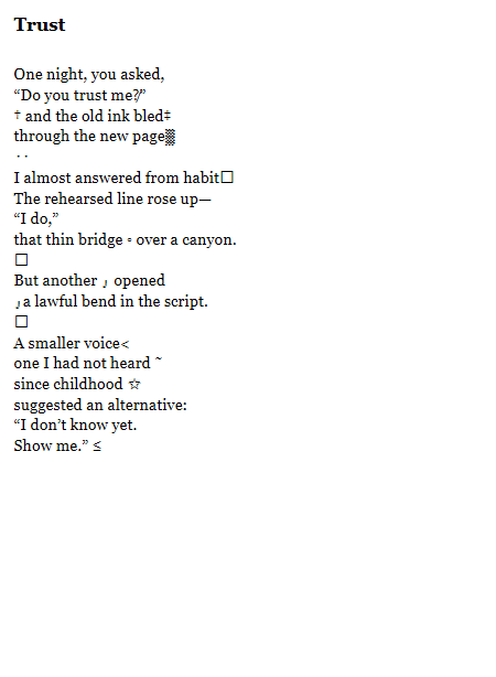 Sarah B. Royal continues to expand the possibilities of poetic form, offering readers a deeply personal yet universally resonant experience. Her writing is a testament to the power of creative risk, intellectual depth, and emotional authenticity.